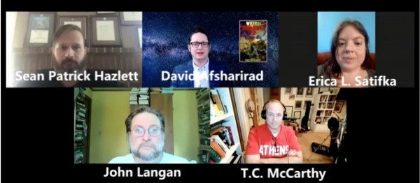 - David Afsharirad, Sean Patrick Hazlett, John Langan, T.C. McCarthy, and Erica Satifka, “Editor and Authors on Weird World War III“, Baen Free Radio Hour, 30 October 2020