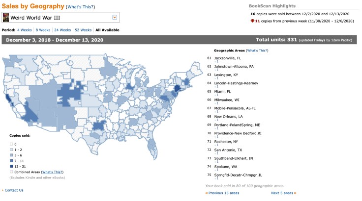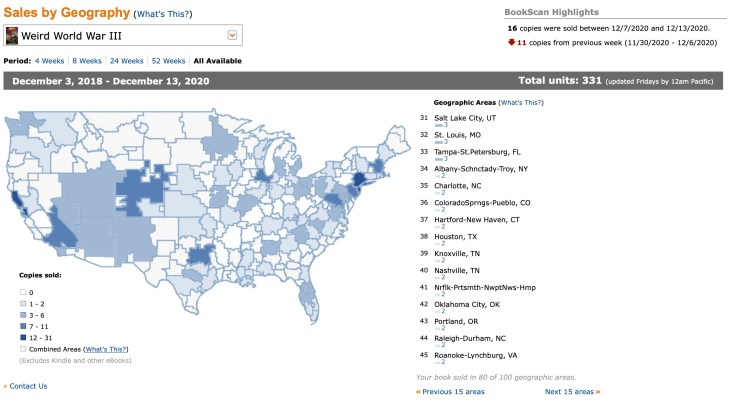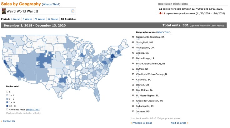 In the first ten weeks since launch, BookScan reported a total of 331 Weird World War III US retail print sales.