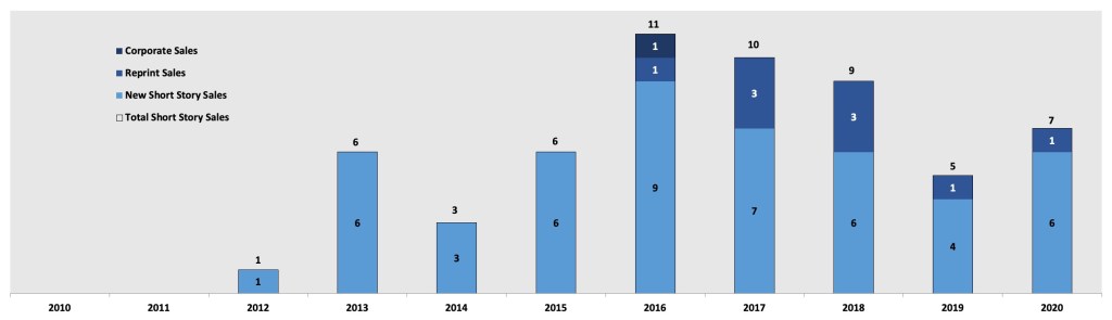- I sold a total of 6 short stories, including 4 new stories and 2 reprints.